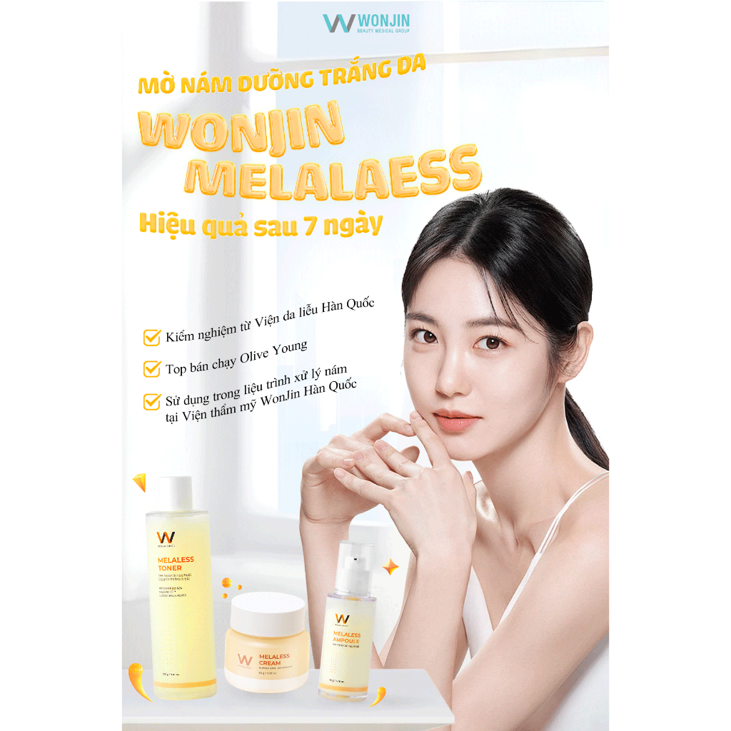 ❤️ Tên sản phẩm: Bộ 3 mờ nám dưỡng trắng sáng da WonJin Effect Toner Melaless 250ml , Serum 50ml + Kem Dưỡng 80g