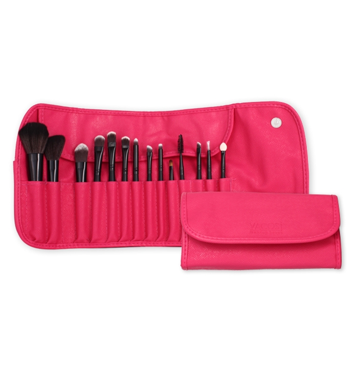 Bộ Cọ Trang Điểm Vacosi 14 Cây BC09 (Bóp Da Hồng)