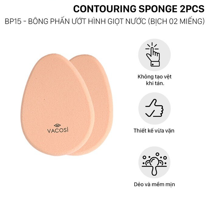 Bông phấn ướt hình giọt nước BP15 VACOSI giúp tán mịn đều các sản phẩm trang điểm dạng kem lỏng hoặc phấn nén, mang lại cho phái đẹp lớp makeup hài hòa, mềm mịn, tự nhiên theo ý muốn.