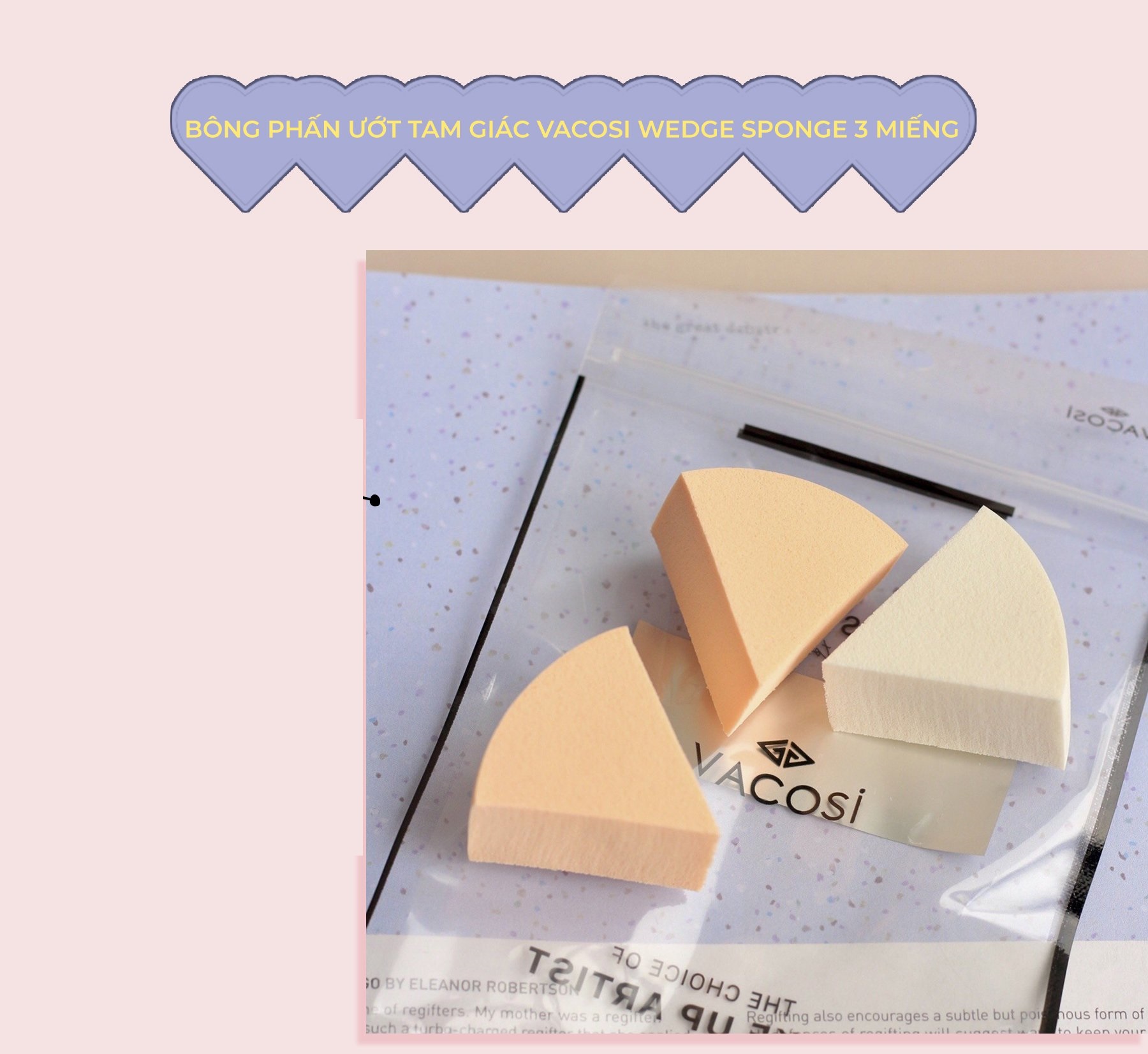 ❤️ Tên sản phẩm: Bông Phấn Ướt Vacosi Tam Giác Nhọn BP12 WEDGE SPONGE 3 PCS (bịch 3 cái)