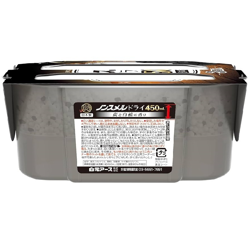 Sản phẩm hộp hút ẩm và làm thơm ngăn tủ Hakugen Earth 450ml giúp hút ẩm và khử mùi khó chịu trong tủ quần áo, tủ giày, quanh bồn rửa. Hiệu quả hút ẩm và khử mùi có thể kéo dài từ 2-6 tháng tùy vào độ ẩm trên thực tế. Mỗi hộp hút ẩm dung tích lớn có thể chứa lên đến 450 ml dịch. Tối đa sau 1 năm sử dụng phải thay mới sản phẩm.