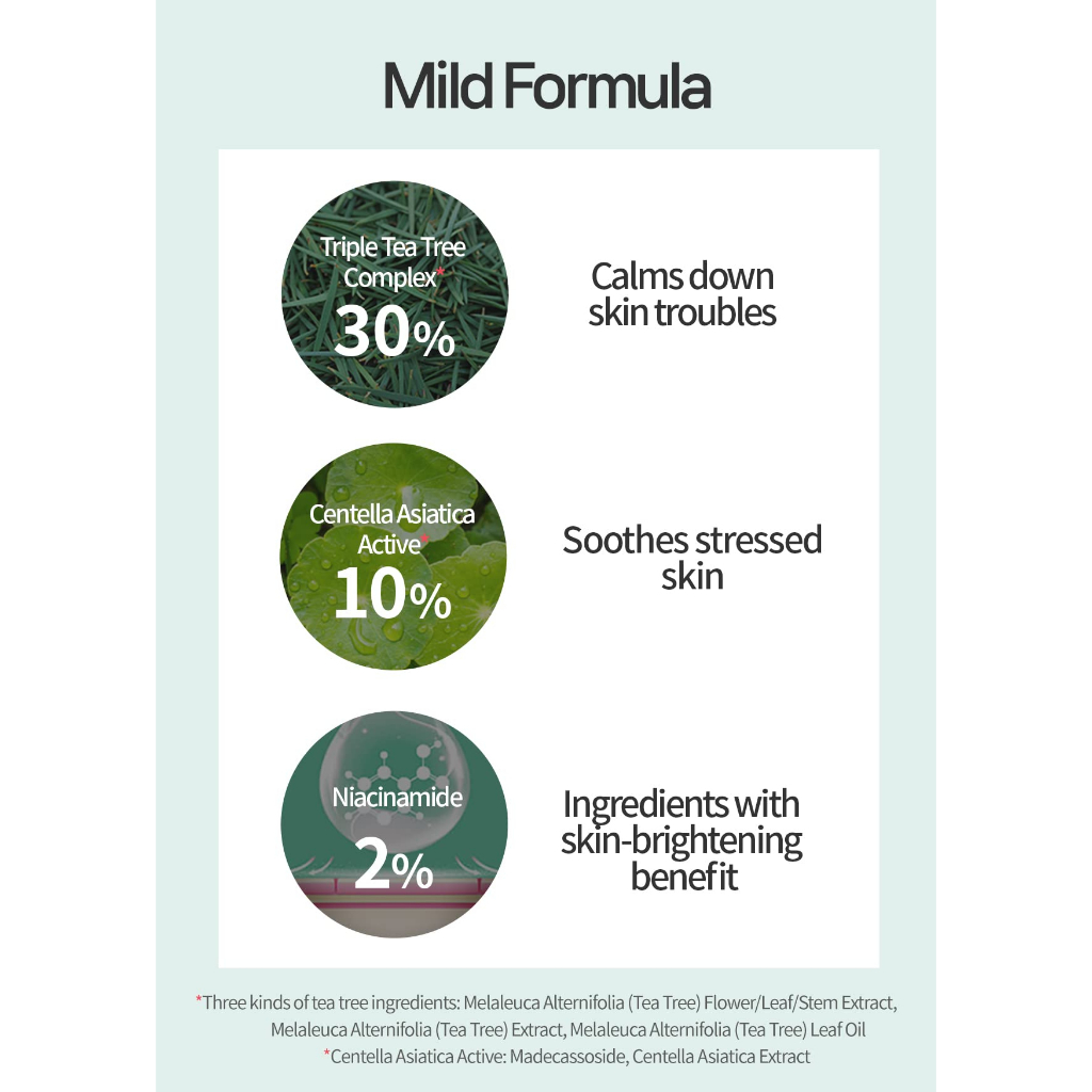 - Phức hợp tràm trà, bao gồm chiết xuất từ hoa, lá và thân của cây tràm trà: Chứa vitamin E và khoáng chất làm dịu mát da, hạn chế mụn trứng cá.