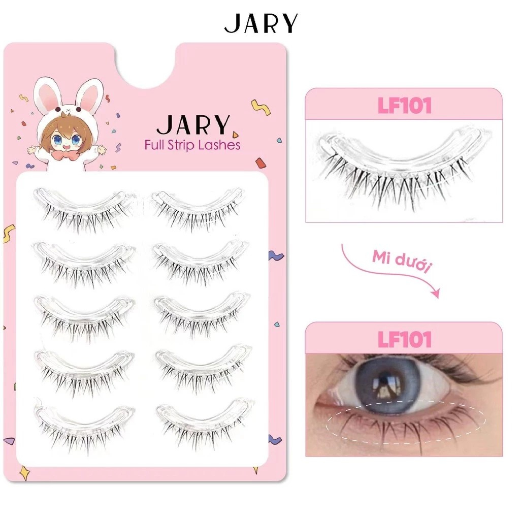- Đa dạng phong cách: Với nhiều độ dài và độ dày mi khác nhau, lông mi Jary Full Strip Lashes cho phép bạn dễ dàng chọn lựa kiểu dáng phù hợp với từng dịp, từ nhẹ nhàng đến ấn tượng.