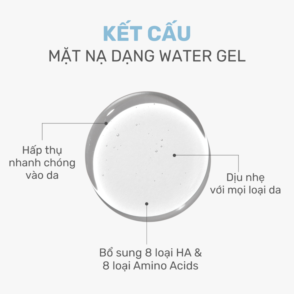 - 8 loại HA và Amino acid: Cung cấp độ ẩm sâu và duy trì làn da căng mọng.