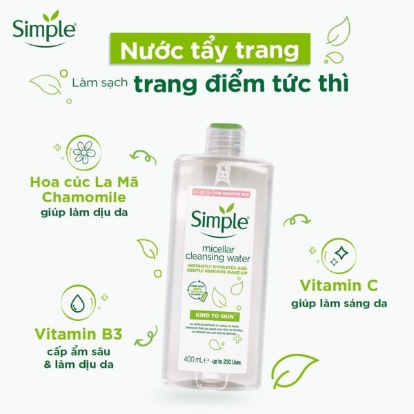 Nước tẩy trang kiềm dầu Simple Micellar Cleansing Water 400ml