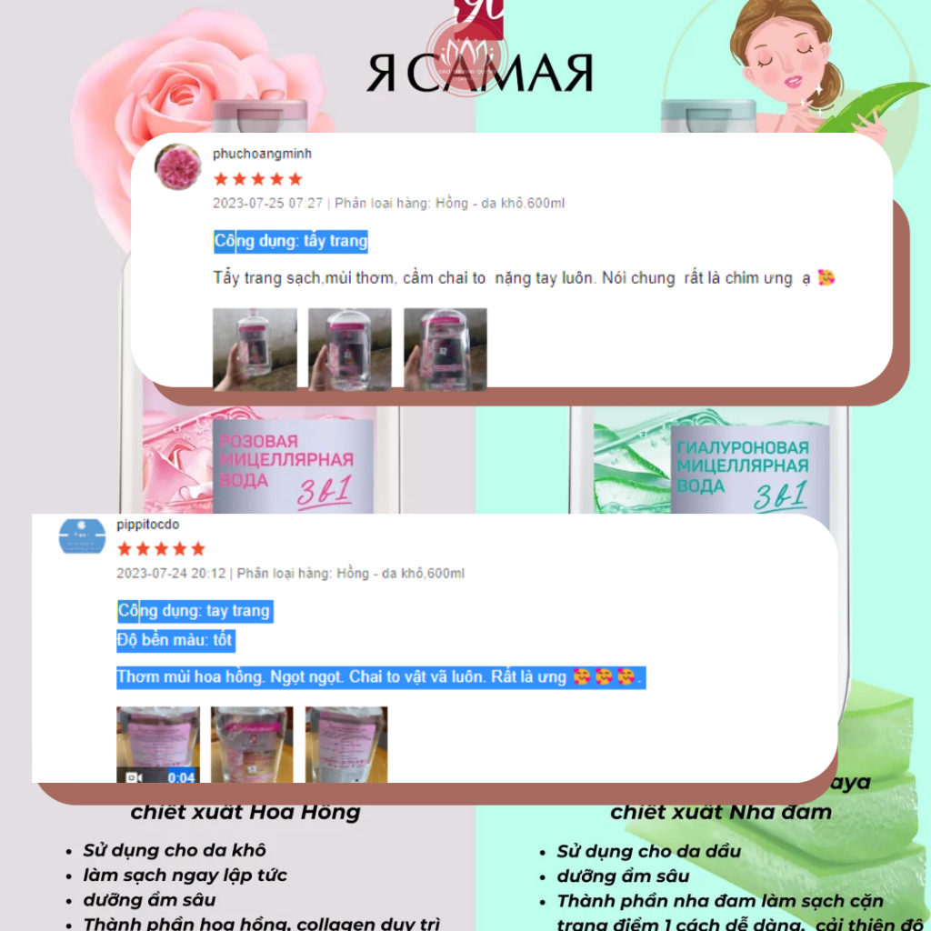 ❤️ Tên sản phẩm: Nước tẩy trang Ya Samaya làm sạch dưỡng ẩm dành cho mọi loại da Xanh - Hồng YaSamaya Nga 600ml