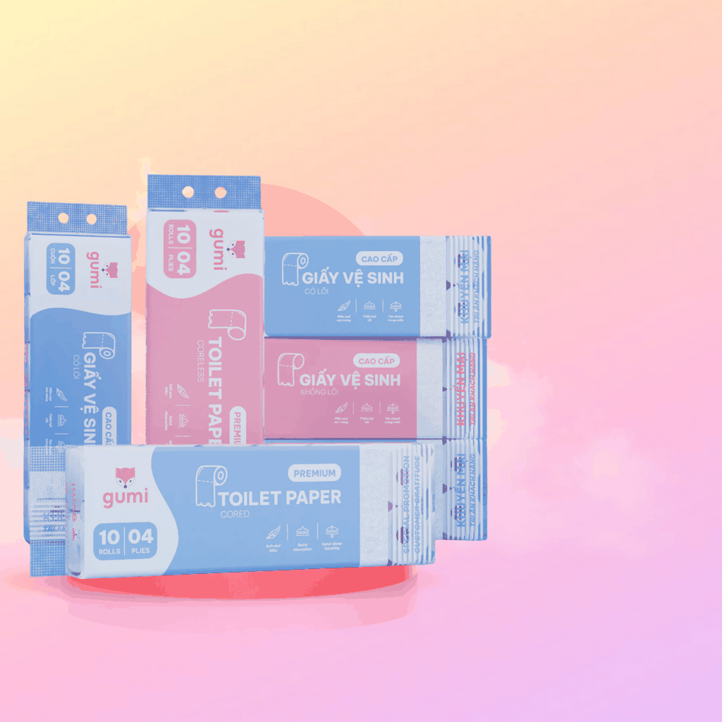 Set 10 cuộn giấy vệ sinh Gumi 4 lớp dày dặn, mềm mịn ( Tặng kèm 2 cuộn )